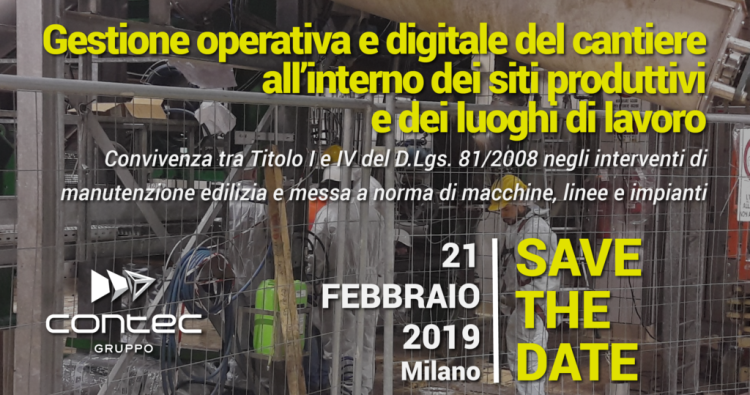 Contec Industry, Contec Ingegneria e Contec AQS organizzano un seminario per approfondire le conoscenze in merito alla corretta gestione dei lavori con interferenza nei casi di installazioni, manutenzioni, opere edili e impiantistiche